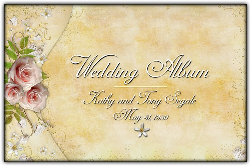 The owner of this album (now an All-Digital album) – which is also on a Website – had lots of wedding PICTURES . . . but had never done an actual wedding ALBUM. Her two sons were themselves planning weddings – so it was "time" to develop (and give to her sons) her OWN wedding album. Eons ahead now . . . just because it's digital. You'll see why as you progress.